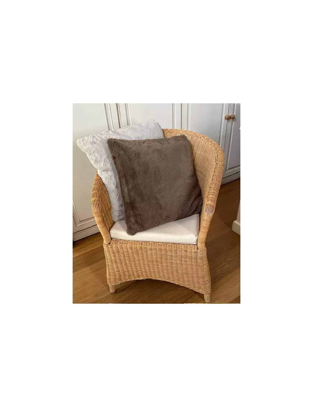 Morbido cuscino , con federa in ecopelliccia , 50x50 - colore Tortora -